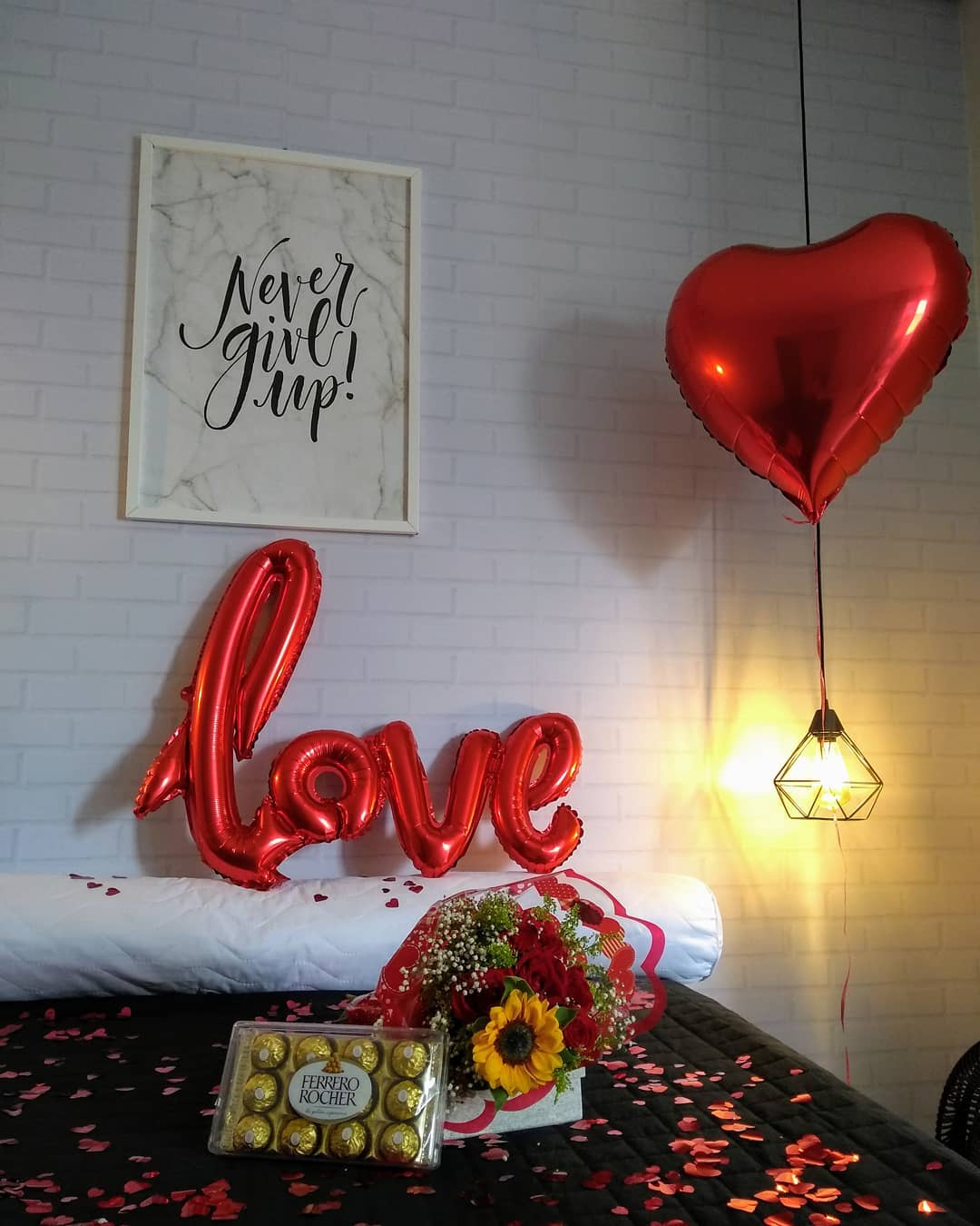 3. Ou decorar o quarto de vocês com balões e flores charmosas