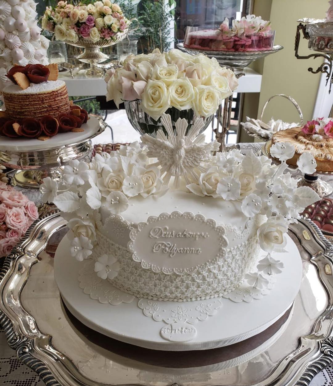 19. Artigos religiosos complementam a beleza do bolo e da mesa