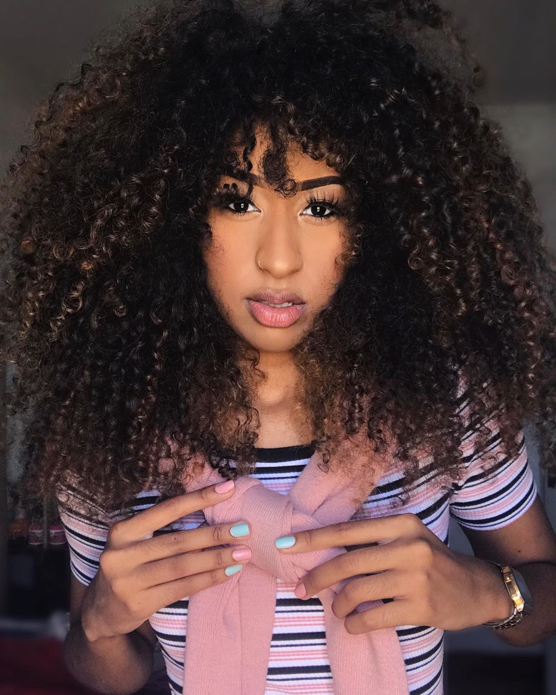 26. Os penteados de cabelos cacheados com franja são tudo de bom