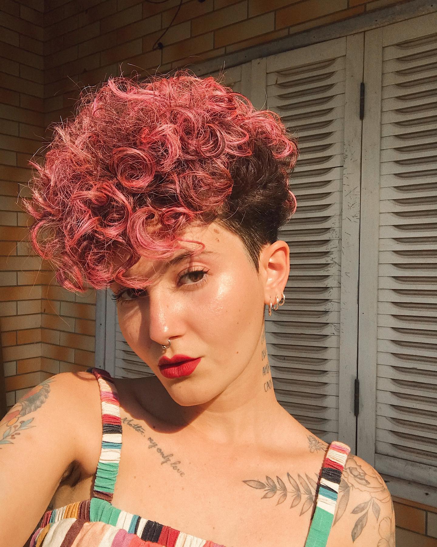 O pixie cut cacheado é uma das variações mais comuns do corte. Isso porque “ele ajuda a dar estrutura para os fios cacheados e ondulados, é uma ótima pedida”, afirma Sandro.