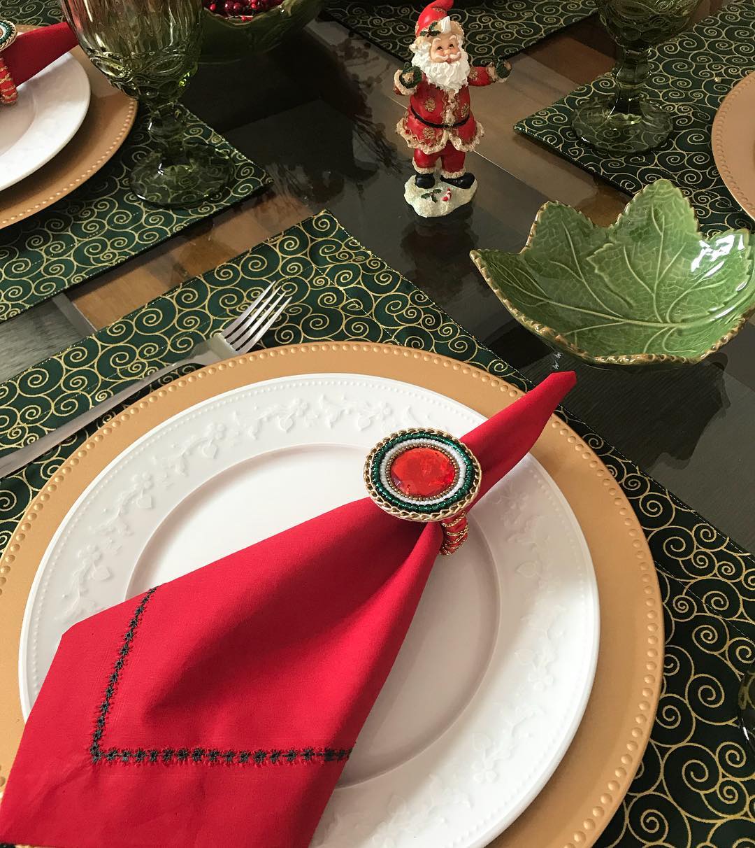 Entre as paletas natalinas, o verde e o vermelho formam uma duplinha certeira. Entretanto, você também pode apostar em outras cores. O dourado, por exemplo, fica um luxo. Já o prato lembra o Natal nos países frios. Também é possível fugir do óbvio e misturar cores.