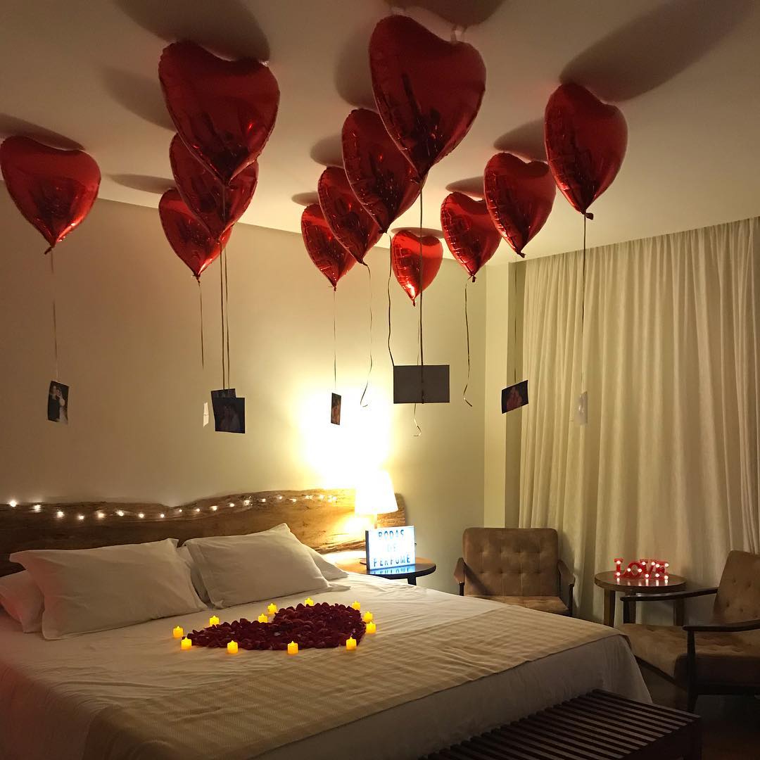 16. Festa surpresa no quarto para namorados: balões no teto ficam incríveis