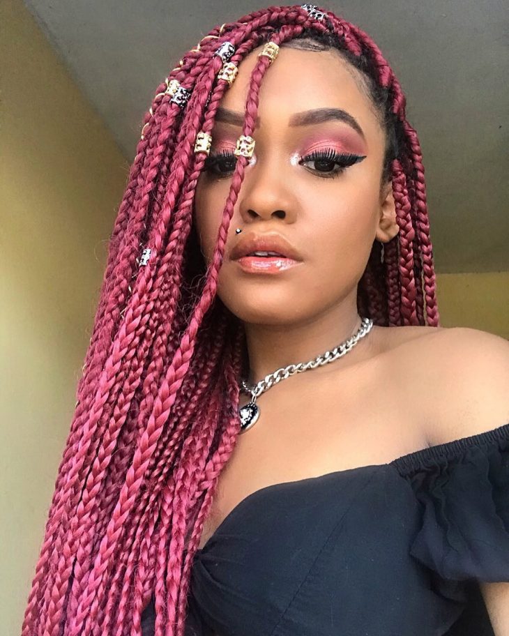 4. Com box braids longas, você pode jogá-las para um lado e investir em acessórios