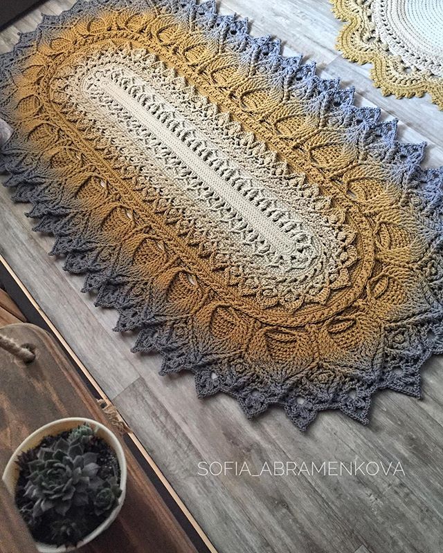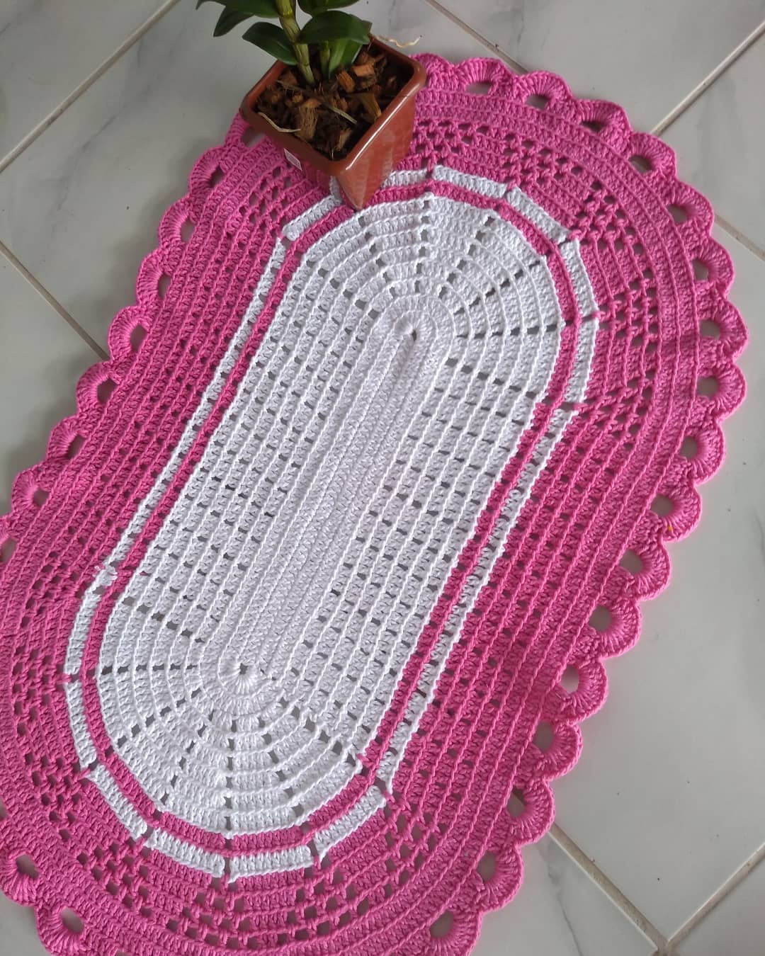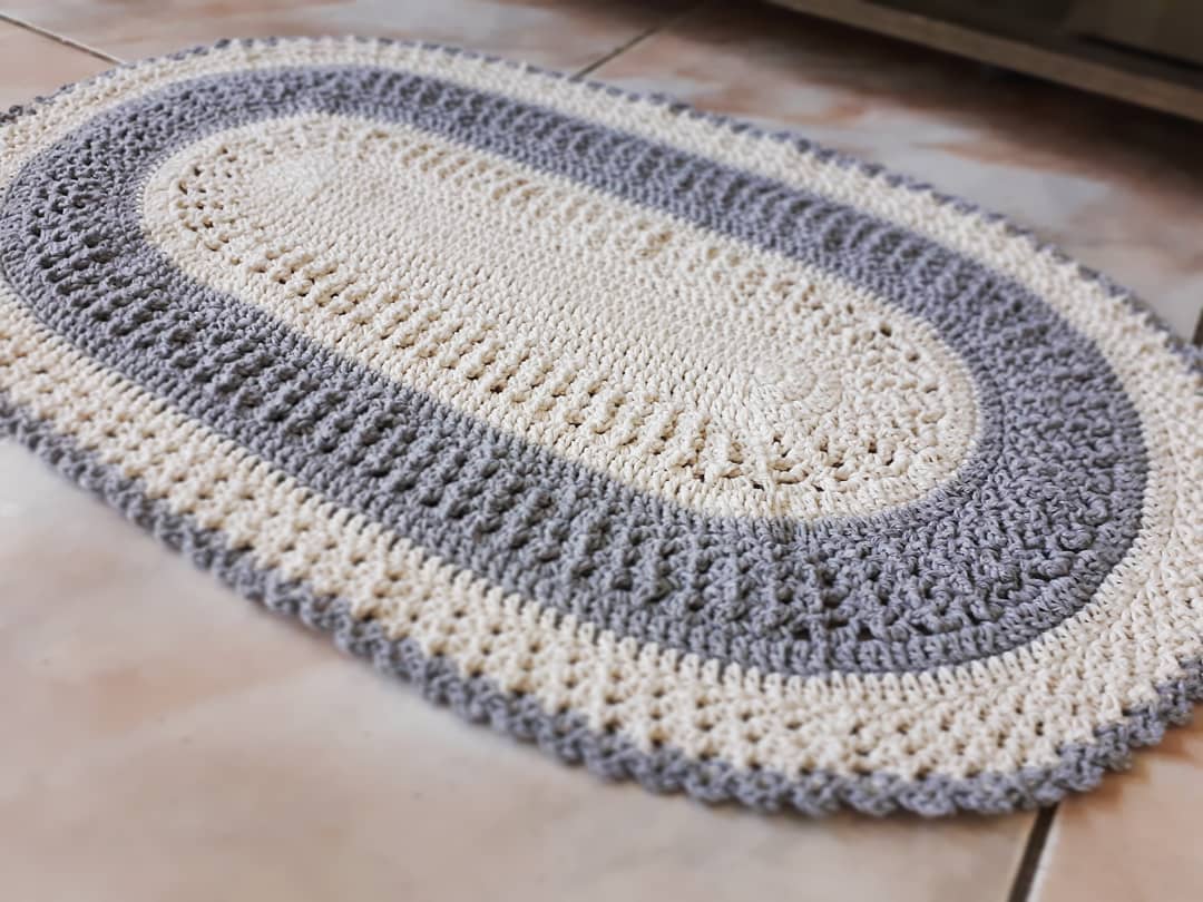 31. O tapete de crochê oval pode ser feito com linha de apenas uma cor