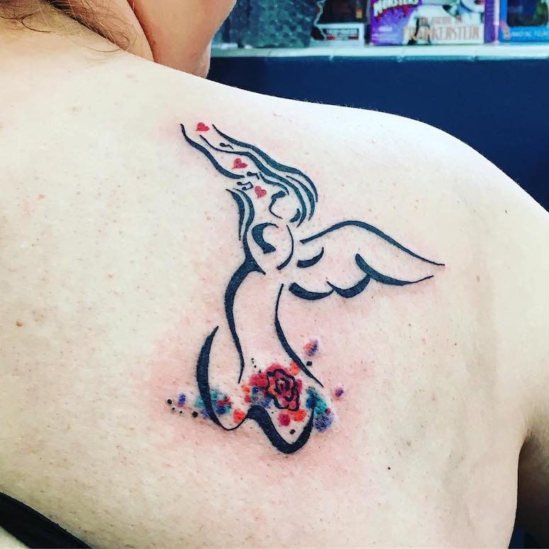 1. Esta tatuagem de anjo feminina pequena é de arrancar suspiros