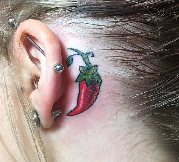 17. Você também pode optar por uma tatuagem de pimenta atrás da orelha