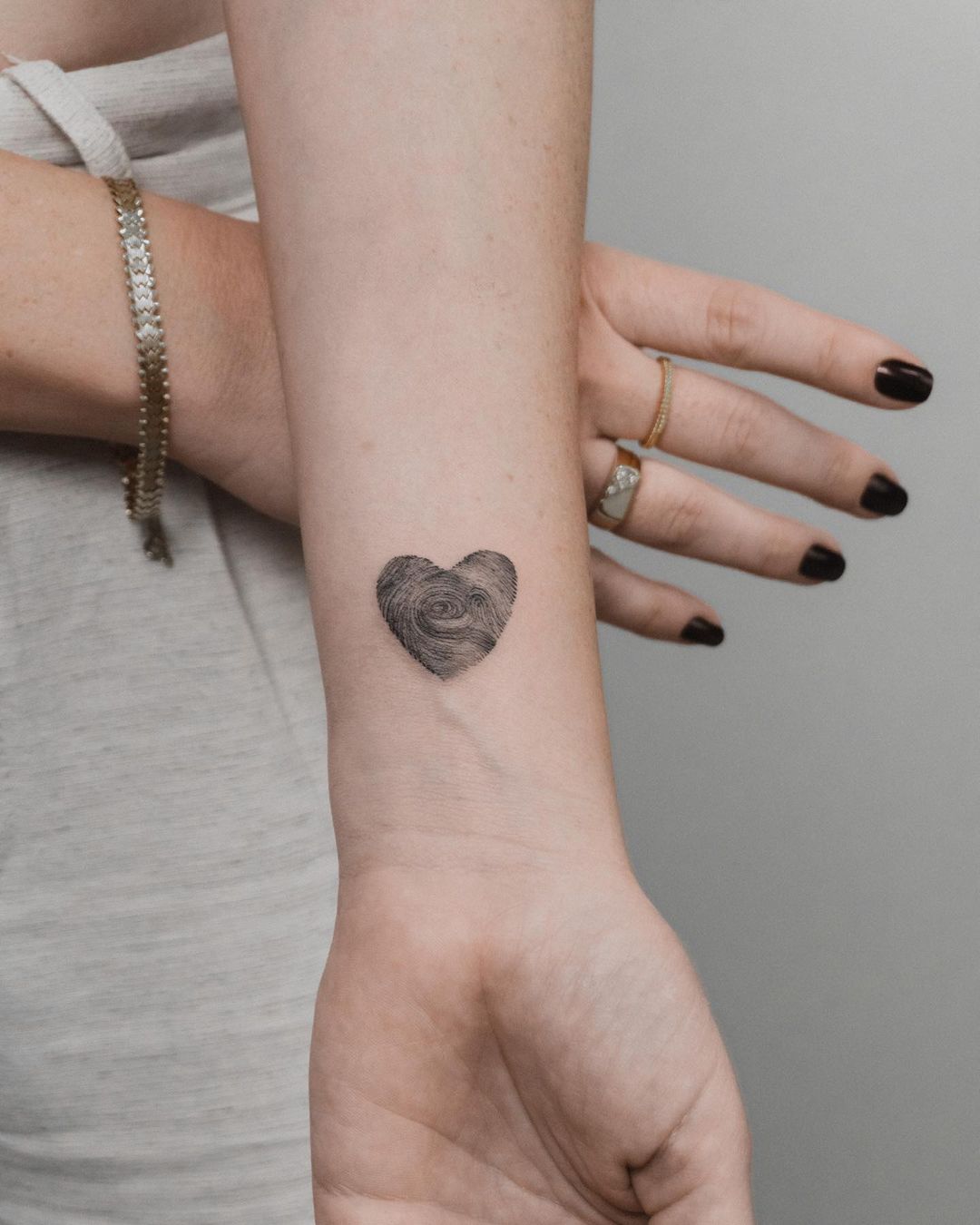 12. Que tal a tatuagem de coração no pulso com a digital do seu amor?