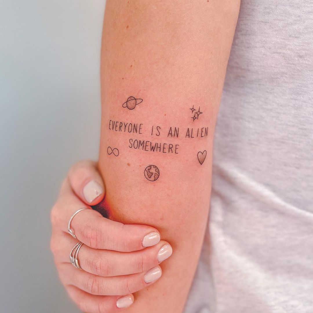 - Tatuagem escrita: pode ser o trecho de uma música, uma palavra ou uma frase. Escolha algo que tenha um significado pessoal para você.