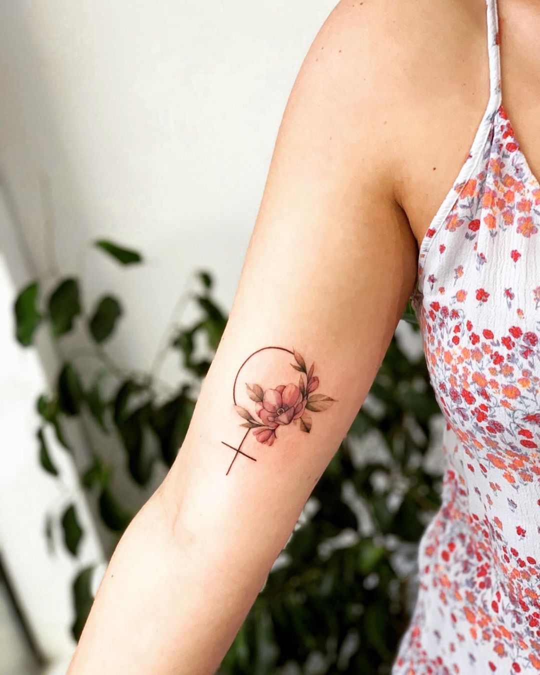 21. Como este girassol tatuado junto ao símbolo de vênus