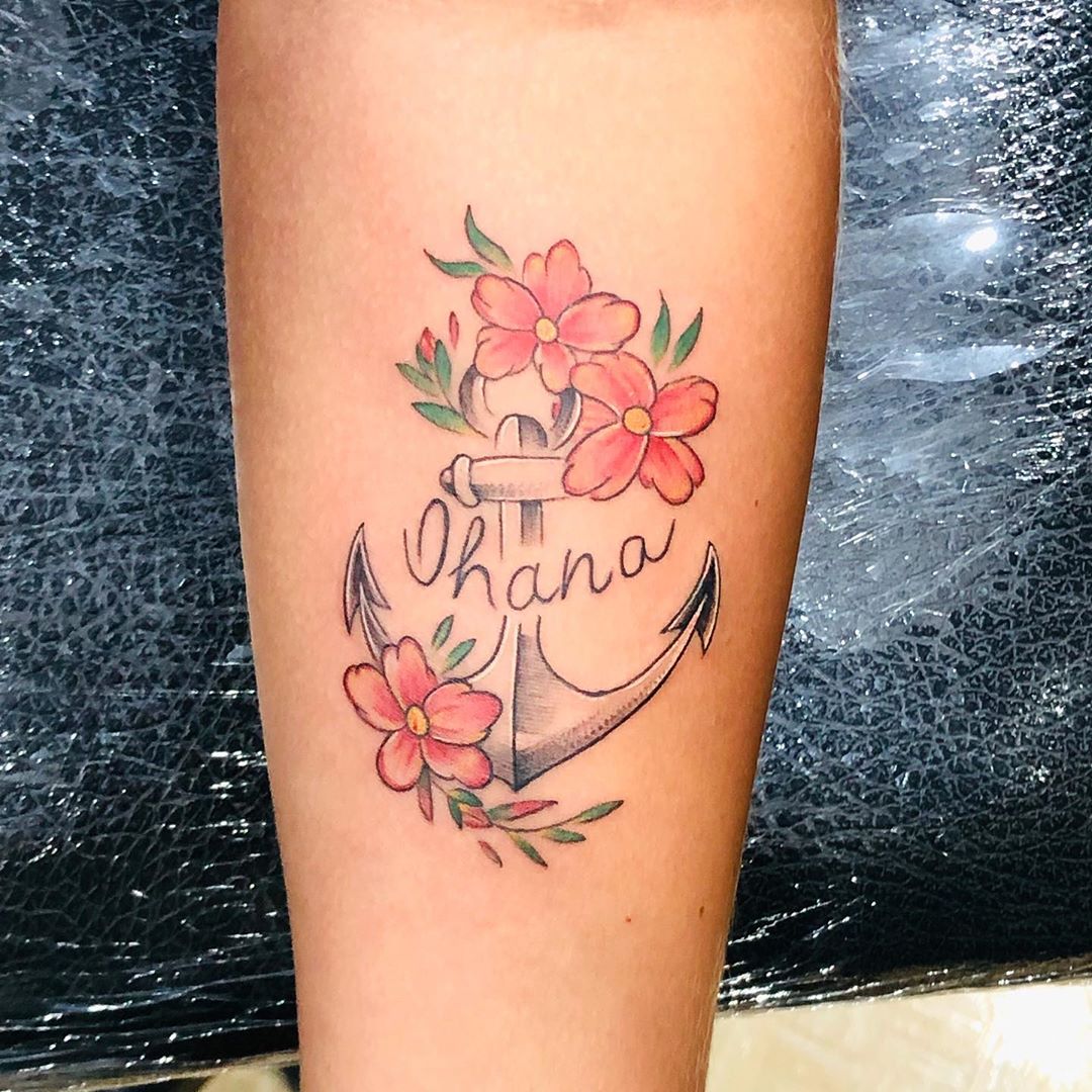 7. A tatuagem Ohana com flor também faz muito sucesso