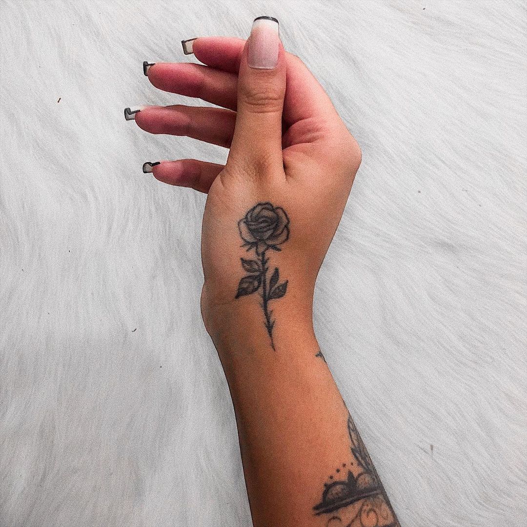 A tatuagem rosa na mão possui diferentes significados. Ela pode falar do amor e até mesmo de suas dificuldades, quando é representada com seus espinhos. Além disso, rosas-vermelhas simbolizam o amor verdadeiro, enquanto as de cor azul ou lavanda representam um amor não correspondido. Confira abaixo ideias de tatuagem feminina de rosa na mão e escolha a sua favorita!