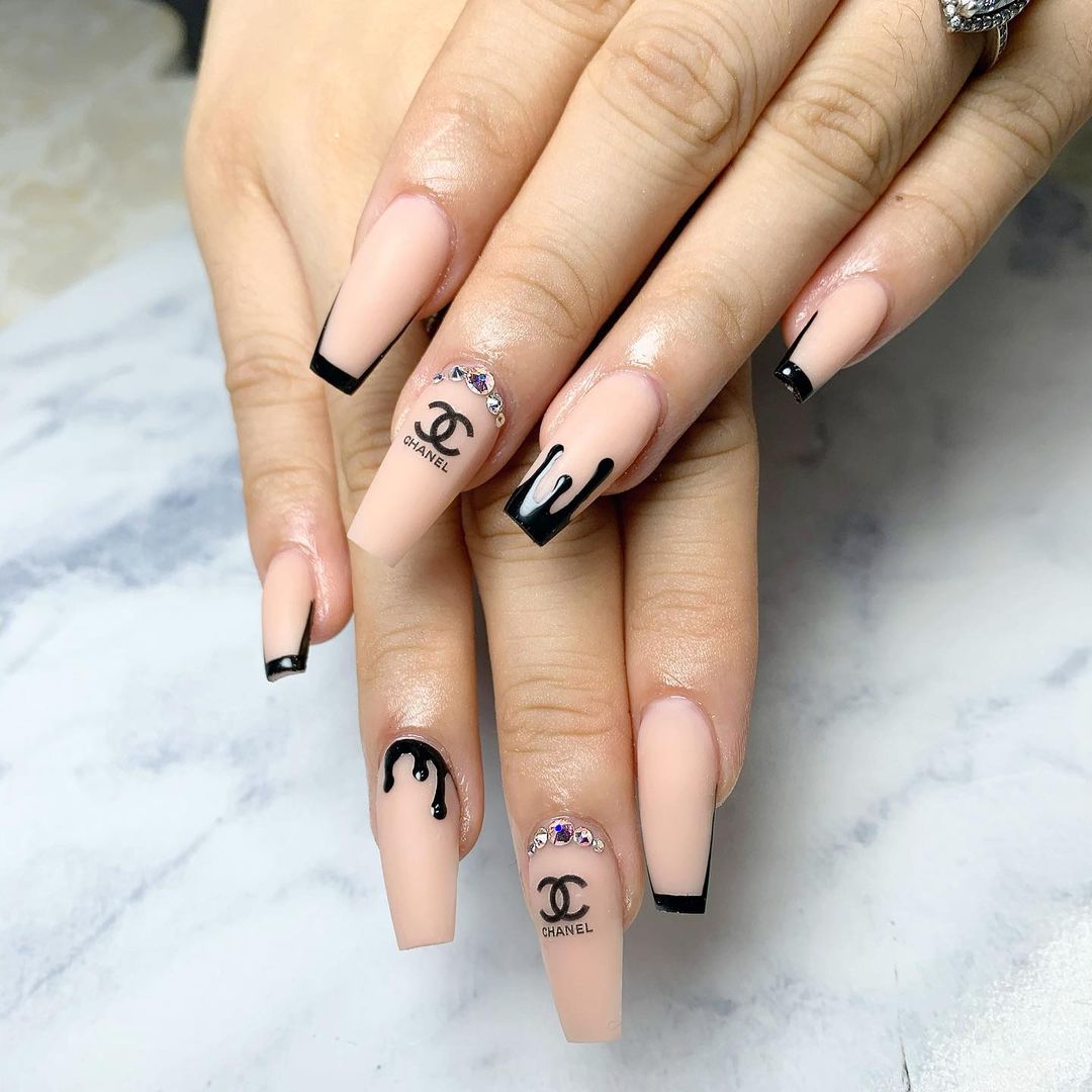 30 fotos de unhas nude com preto que vão te ajudar a escolher o desenho perfeito