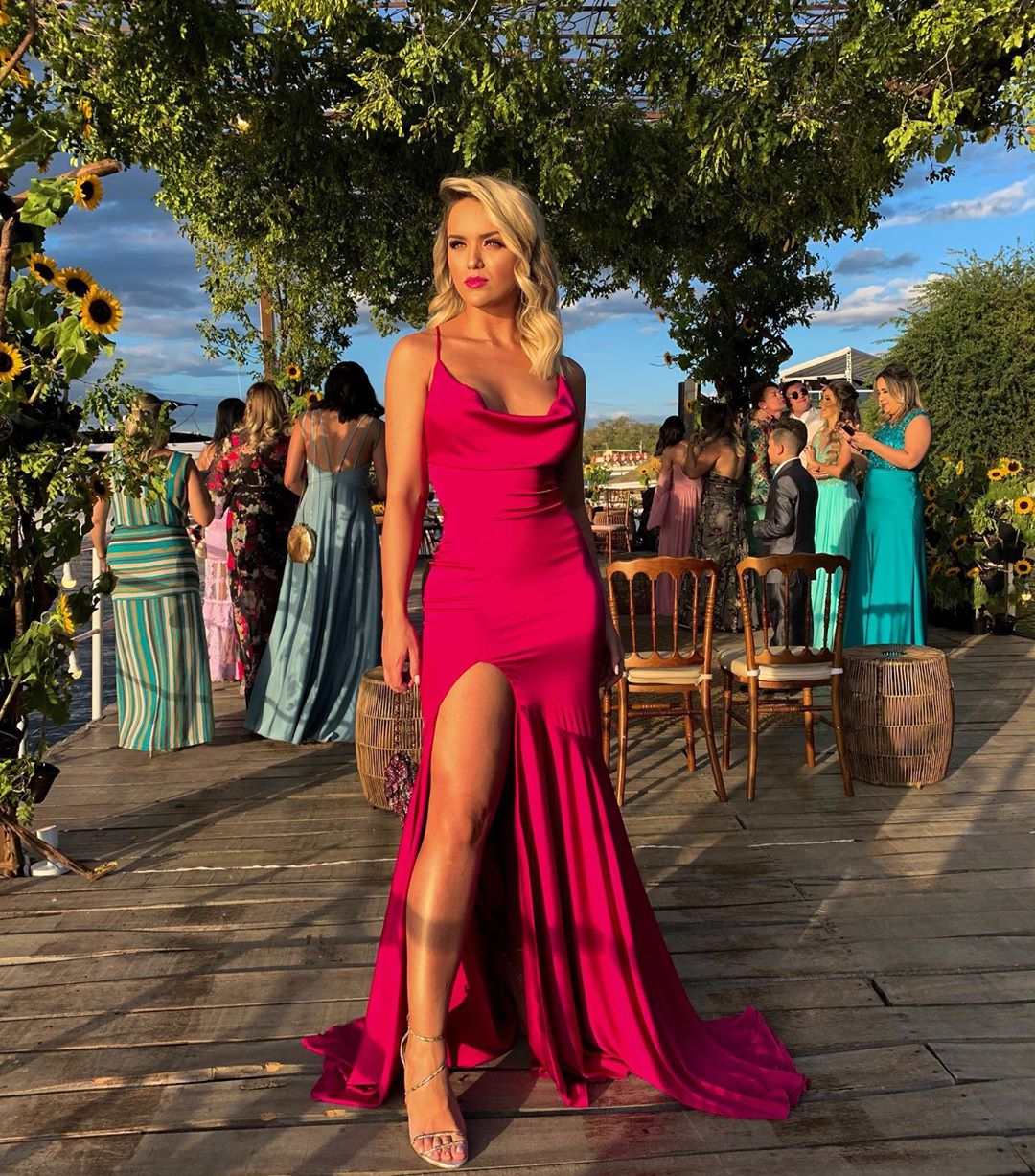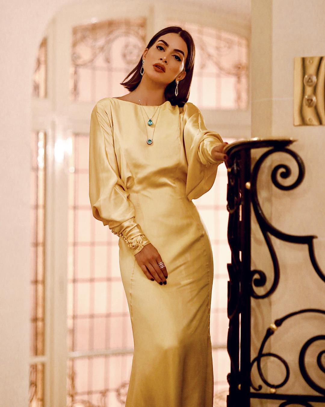 9. Com o vestido de cetim, você não precisa de muito para arrasar