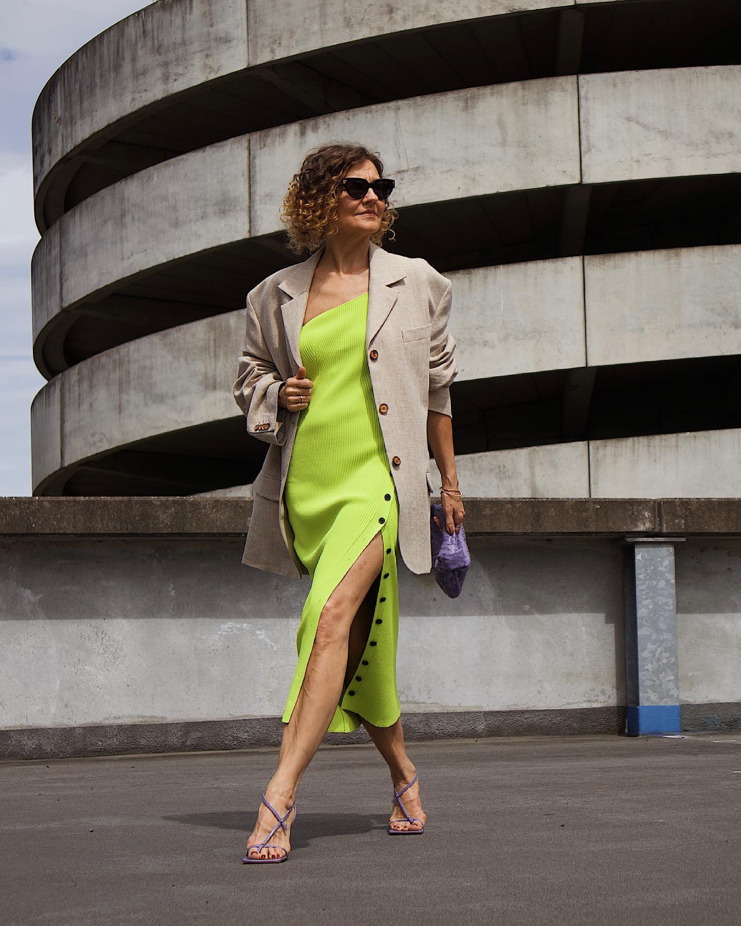 48. Quem sabe usar o vestido com um blazer cheio de personalidade?